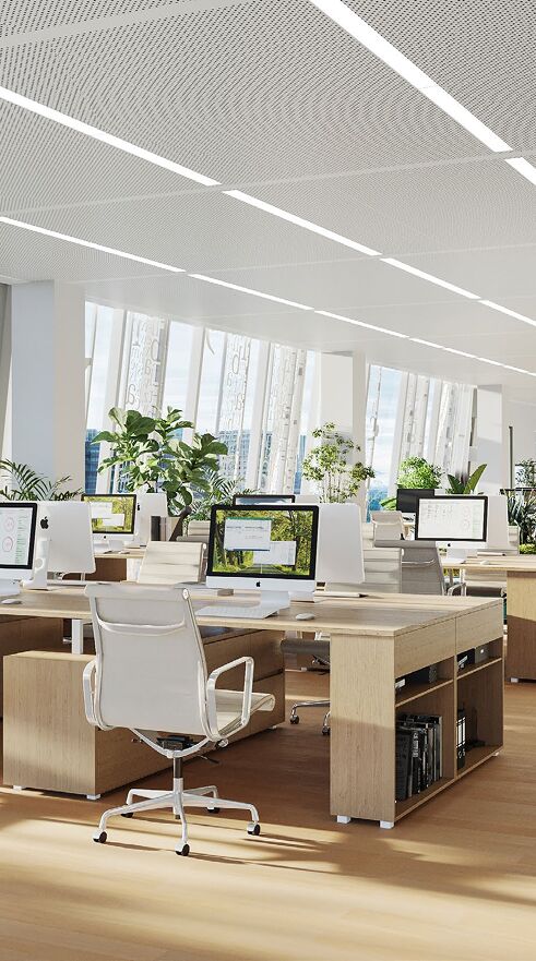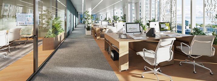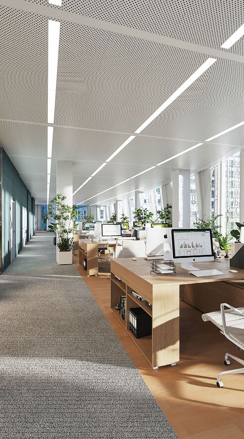 - Ceiling height on office floors: gross 3.60 m, net 2.80 m (free height)