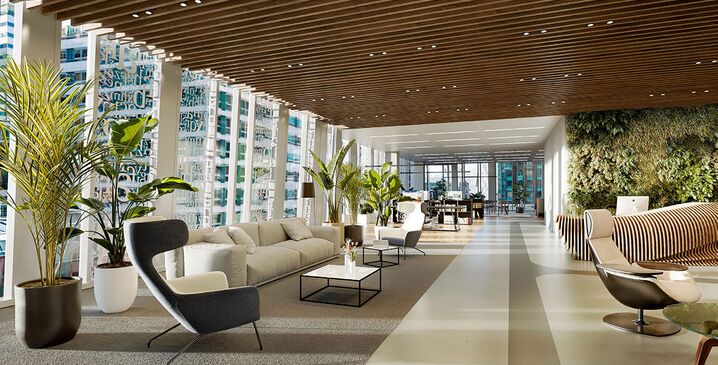 An all-day bar at the mezzanine. Informal meeting/seating areas for wellbeing & comfort