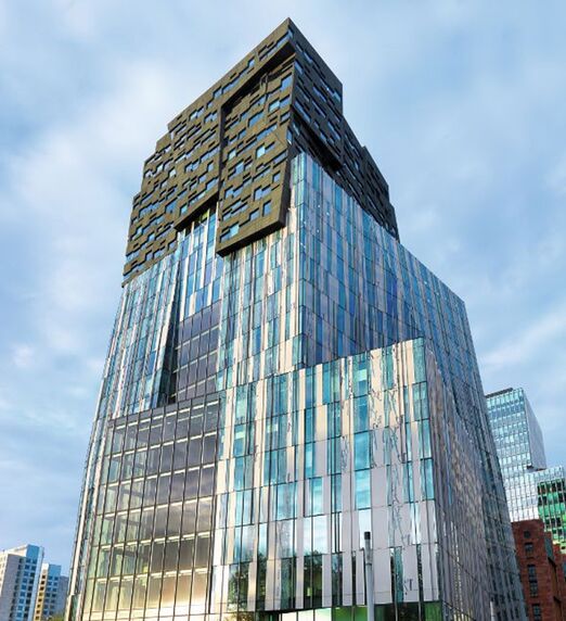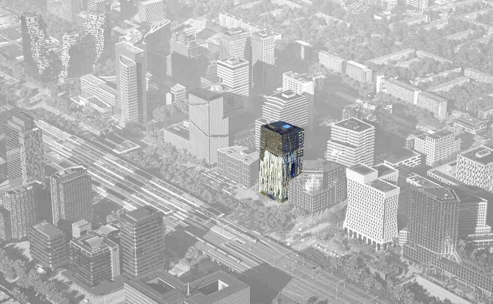 The building is designed by architect Erick van Egeraat, completed in 2009 and renovated in 2024. The architect created an innovative composition of shifted volumes and a transformation from light to heavy materialization, resulting in an expressive landmark that appears different from every angle. Each of the three sections of the building reveals its own character and material expression, offering space suited to potentially different tenant requirements.